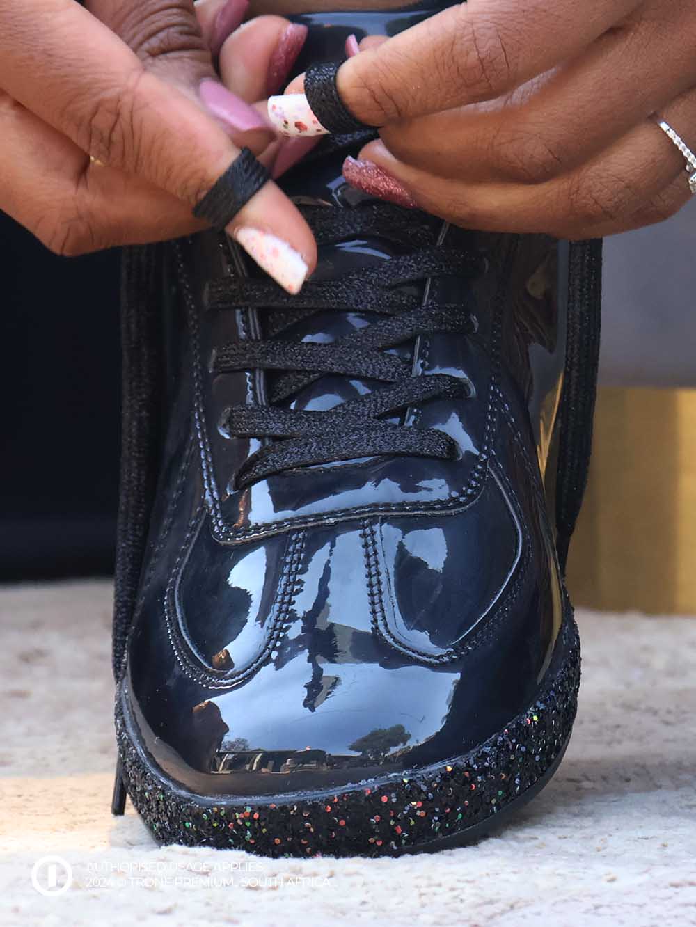 The Bloemfontein Gliteree Tekkie is a fashionable street wear. It is an easy blend shoe that can be worn with casual and traditional wears.